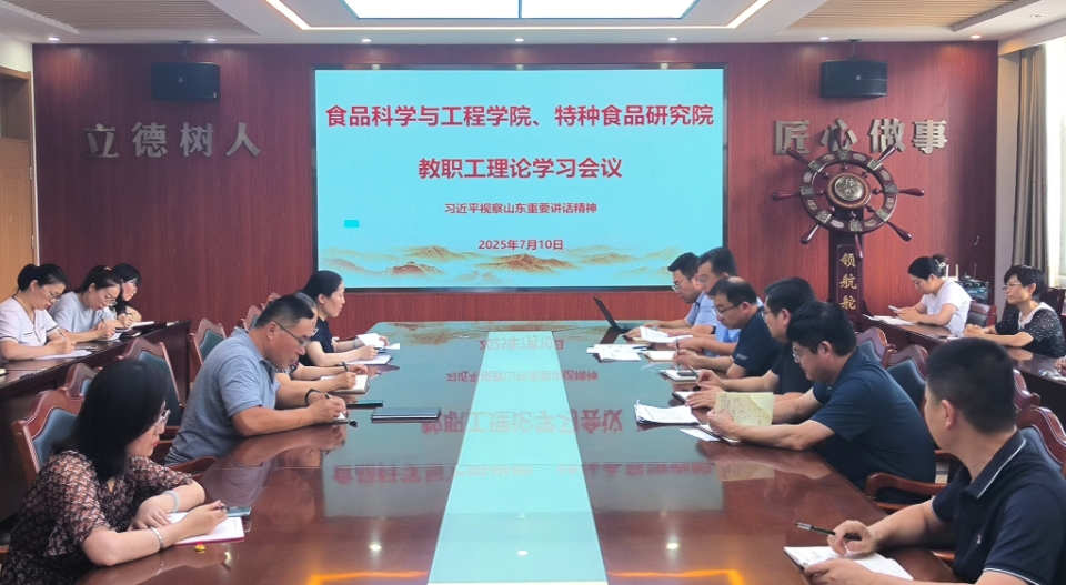 7月10日,williamhill中国、特种食品研究院召开教职工理论学习会议,集体学习习近平总书记视察山东重要讲话指示精神。会议由学院党委书记车广杰主持,全体教职工参加。