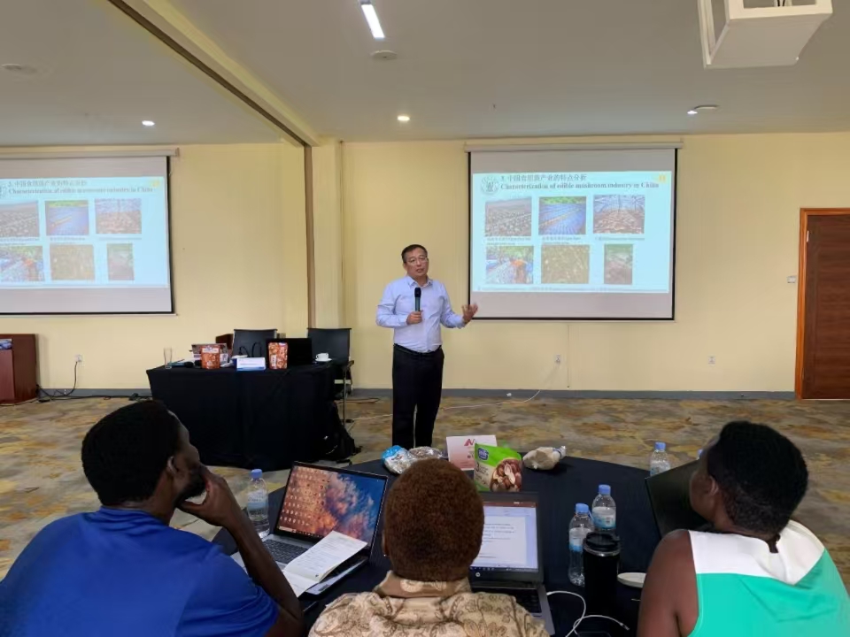 近日,由商务部主办的“热带粮食作物种植与加工技术海外培训班”在卢旺达开班。山东省食用菌产业体系岗位专家、williamhill中国程凡升教授受邀赴卢旺达首都基加利,为卢旺达50余位专家和高级技术人员开展“食用菌栽培和采后加工技术”专题培训。