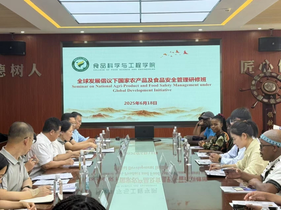 食品学院专家教授与来访的学员围绕食用菌贮藏与加工、农产品全产业链安全控制、食品加工新技术应用、食品安全标准与监管体系、农业可持续发展等核心议题进行了深入的交流。访问期间,代表团还参观了学校校史馆、现代农业装备成果展厅、食品楼中心平台。