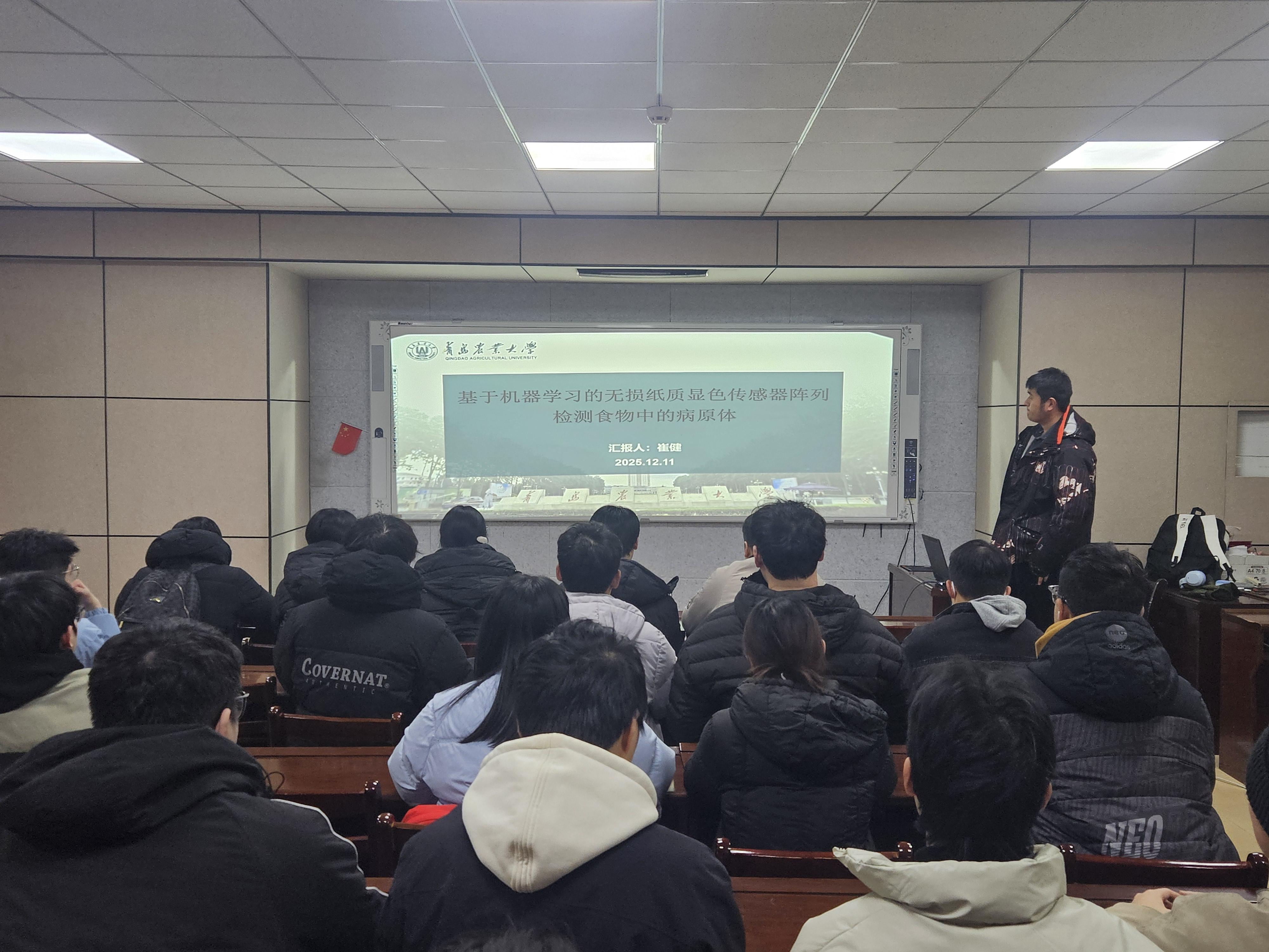 12月11日,williamhill中国在食品楼302举办第六十期“食学研讲”活动。此次活动由食品硕2504班崔健主讲,主题为“基于机器学习的无损纸质显色传感器阵列检测食物中的病原体”。