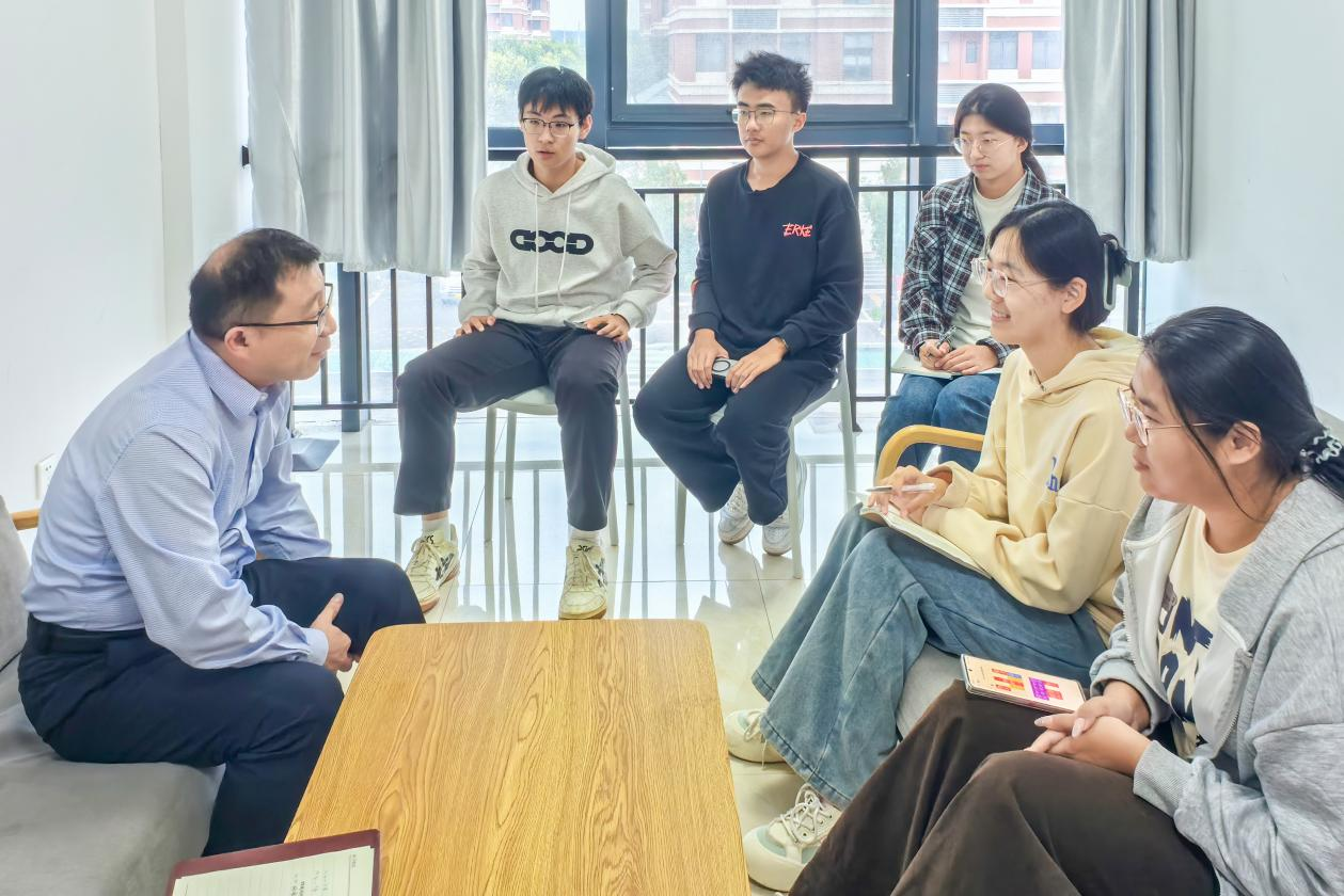 交流中,刘晓华从角色认知、职责使命、工作方法与个人成长等多个维度,与同学们进行了系统分享与交流。他谈到,大学阶段的班长、团支书是锻炼能力、服务同学、提升自我的重要平台。大家应深刻理解岗位意义,珍惜锻炼机会,以高度的责任感和奉献精神投身班级建设。他希望大家首先要找准自身定位,在工作中,要带头遵守校纪校规,在学风建设、宿舍管理、活动组织等方面发挥模范作用;要注重工作方法,做到上传下达不简单“转发”,而是消化吸收、有效传达;要主动了解同学需求,积极帮助解决实际困难。刘晓华希望班长与团支书密切配合、主动谋划,积极组织形式多样的班级活动,增强集体凝聚力和荣誉感。