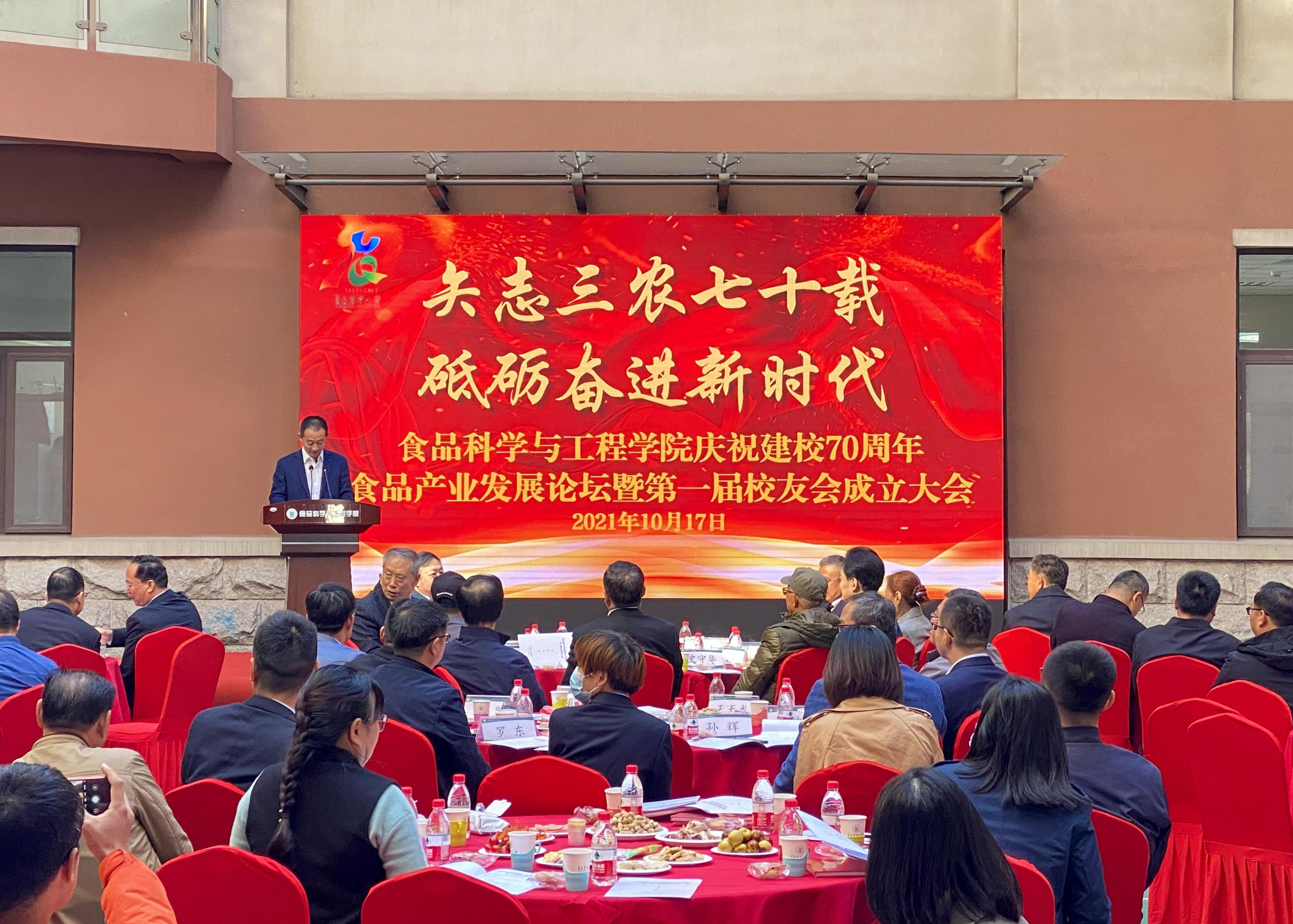 10月17日,williamhill中国庆祝建校70周年食品产业发展论坛暨第一届学院校友会成立大会于食品楼内广场举行。校党委副书记王庆军出席仪式,食品学院党政班子成员、离退休教师和部分校友代表参加会议,会议由学院党委书记宋伟主持。