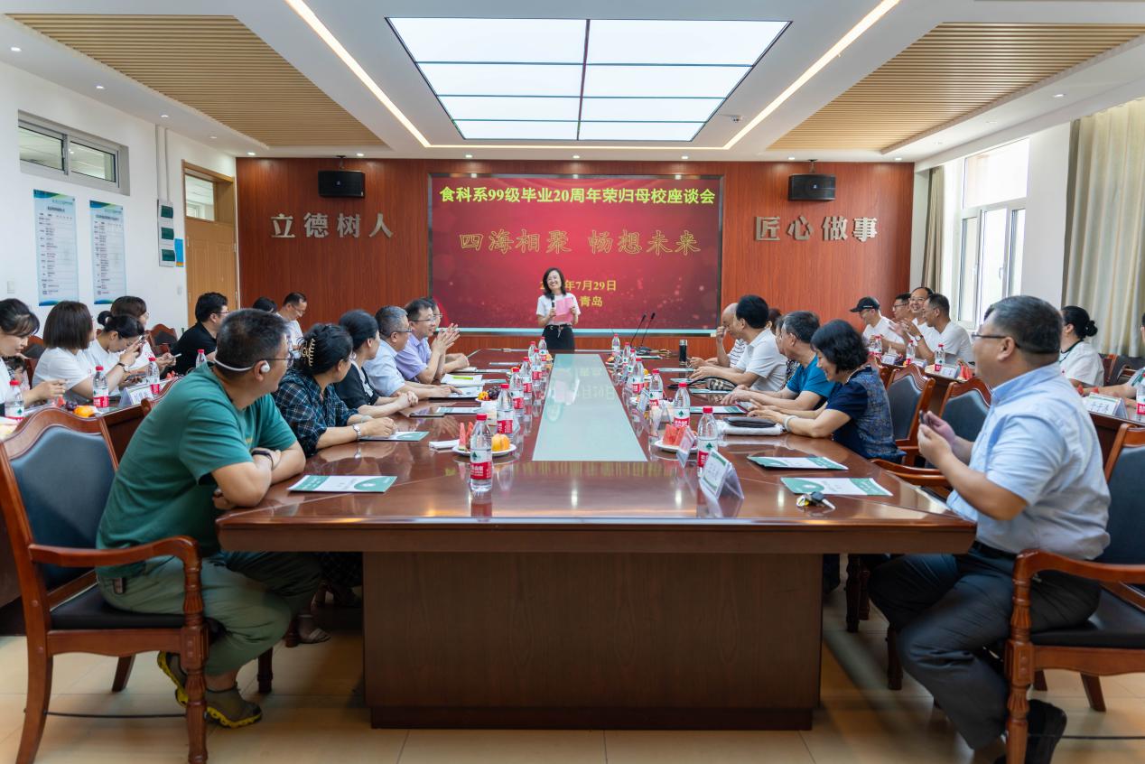 7月29日,williamhill中国1999级校友从天南海北再聚母校,与学院老师欢聚一堂,共忆青葱岁月,重温师生情谊,再叙同窗情怀。学院老领导原食品科学与工程系副主任姜连芳,原食品科学与工程系班主任仇宏伟、王世清、栾明川,原食品科学与工程系任课教师王成荣、李颖、陈海华、张双灵、范荣波,原食品科学与工程系班助杨凯、王天龙、王春晓,学院领导孙庆杰、刘晓华、肖军霞等参加座谈会。