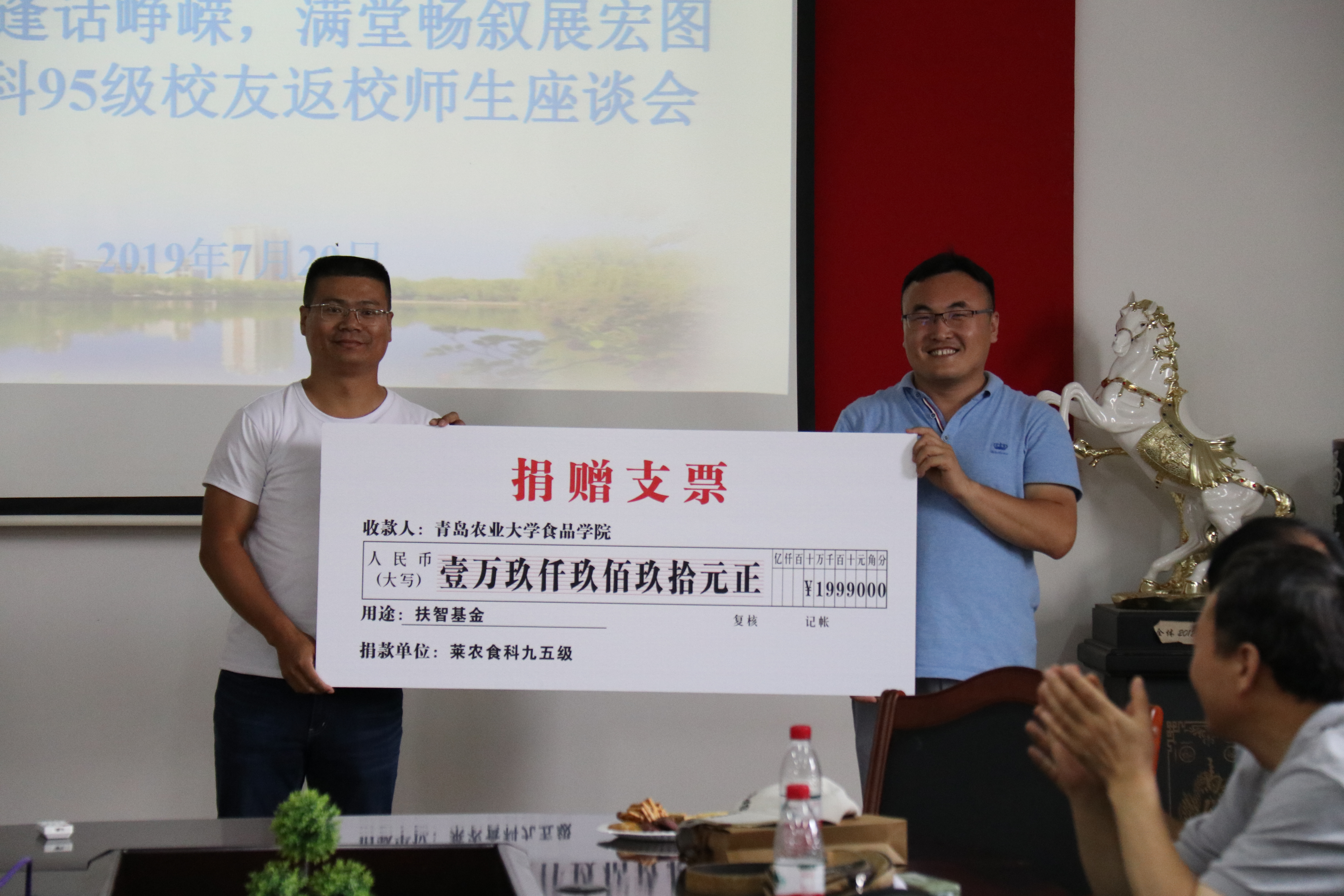 95级校友向学院“校友扶智教育基金”进行了捐赠。“食品学院校友扶智教育基金”由学院94级校友发起,旨在通过每届校友毕业二十周年返校之际,为学院教育事业的发展贡献自己的力量。教育基金主要用于学院学风建设。