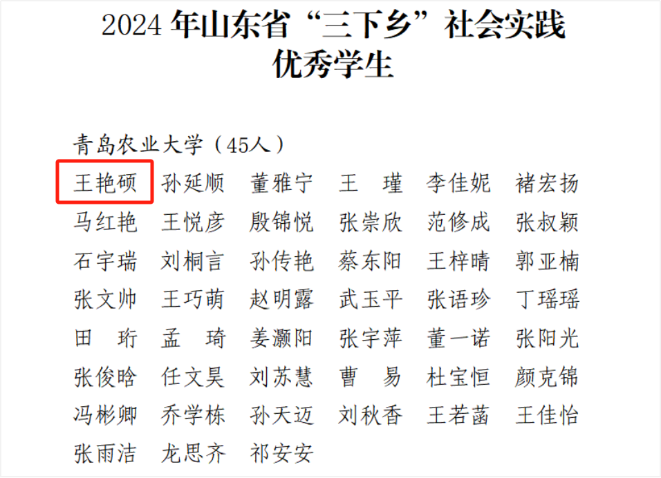 近日,中共山东省委宣传部、山东省教育厅、共青团山东省委、山东省学生联合会联合发布《关于“调研山东”——2024年山东省大中专学生志愿者暑期“三下乡”社会实践活动的通报》,表彰了在今年暑期“三下乡”社会实践活动中表现优秀的集体、个人和项目。williamhill中国1名教师荣获省级“优秀指导教师”,1名学生荣获省级“优秀学生”,1支社会实践团队荣获省级“优秀实践团队”。