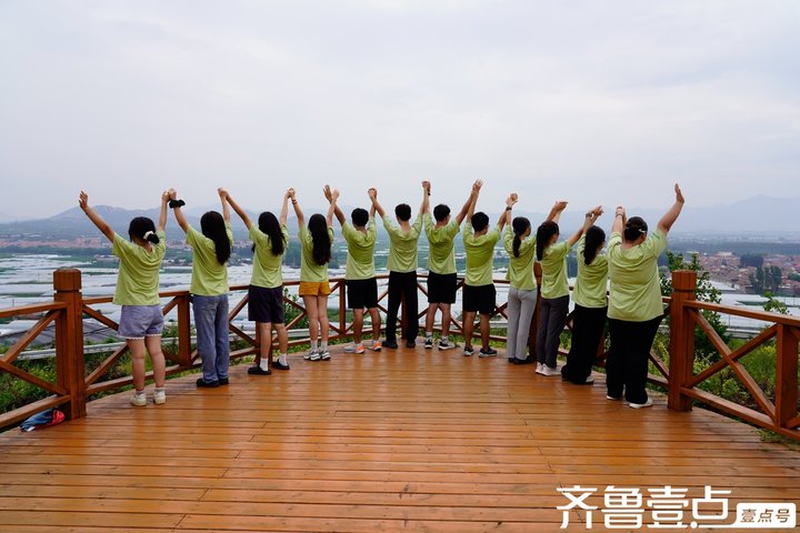 (图为实践团队在紫韵田园山顶观景台的合影)