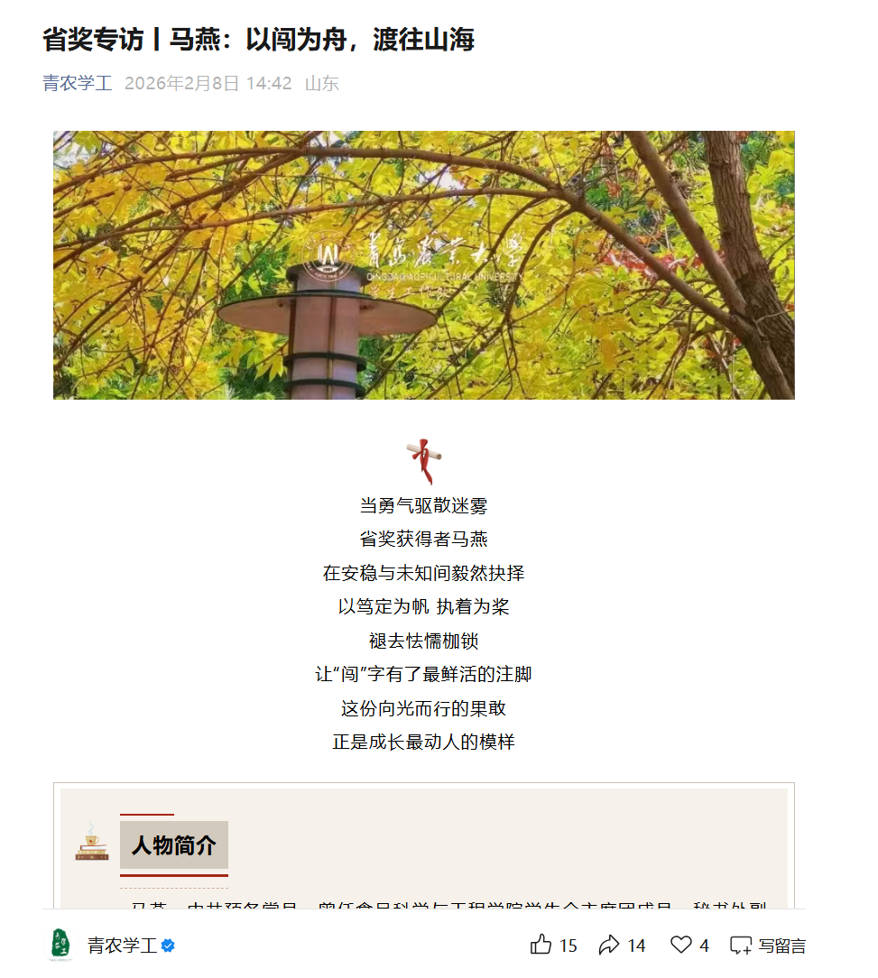 山海寻梦,不觉其远;前路迢迢,阔步而行。这“闯”字背后,绝非孤身远征,是家人支持织成的安全的网,是师友言语化作的沿途的灯,是陌生人不经意的善意带来的拂面微风。正是这些温暖的联结,托住了那个时有彷徨的我,让我的“闯”不孤单,也更有底气。