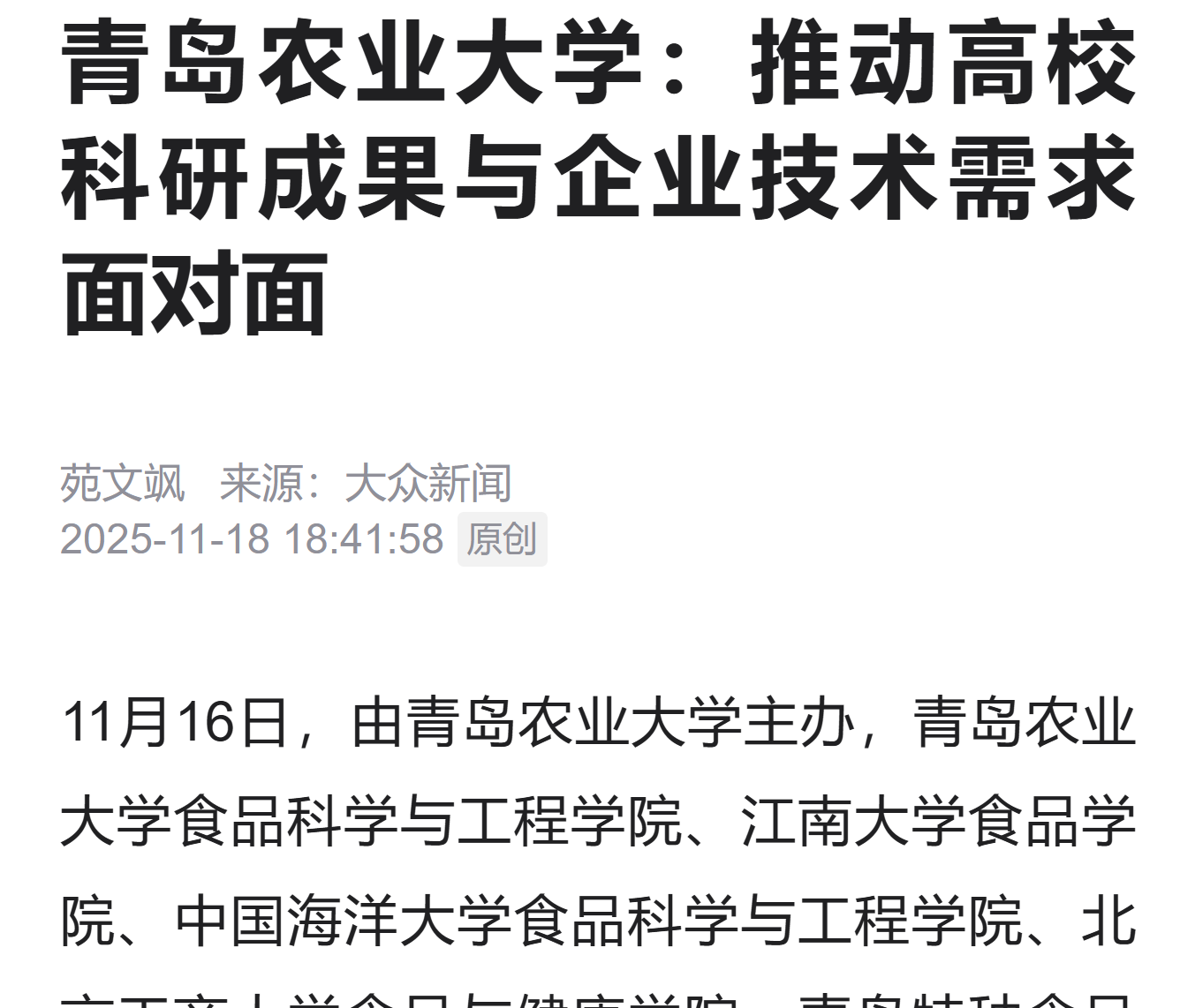大众新闻·农村大众:青岛农大推进特种食品创新研发“供给侧”与“需求侧”零距离互动