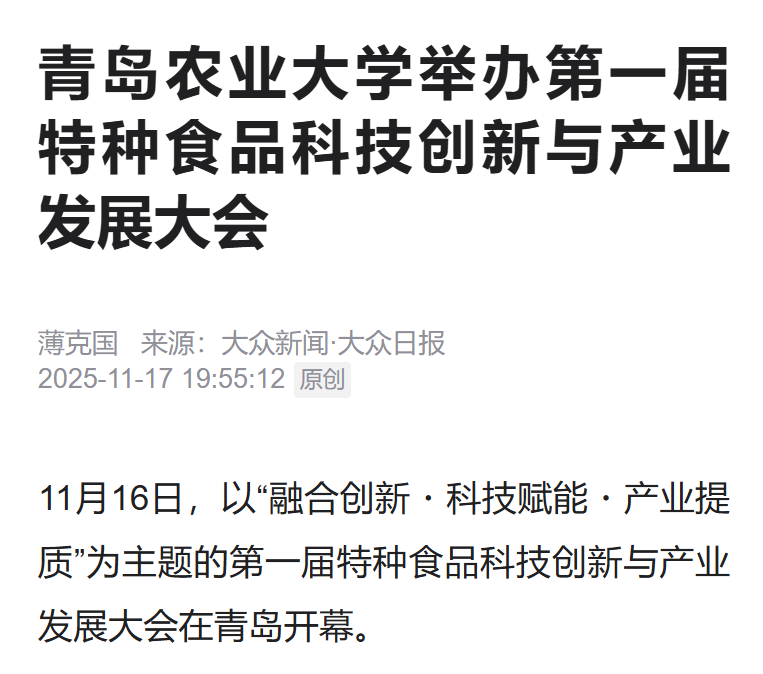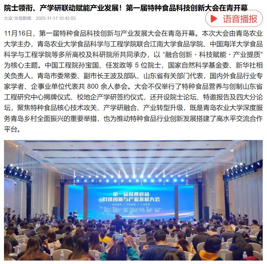 大众·半岛新闻:院士领衔、产学研联动赋能产业发展!第一届特种食品科技创新大会在青开幕