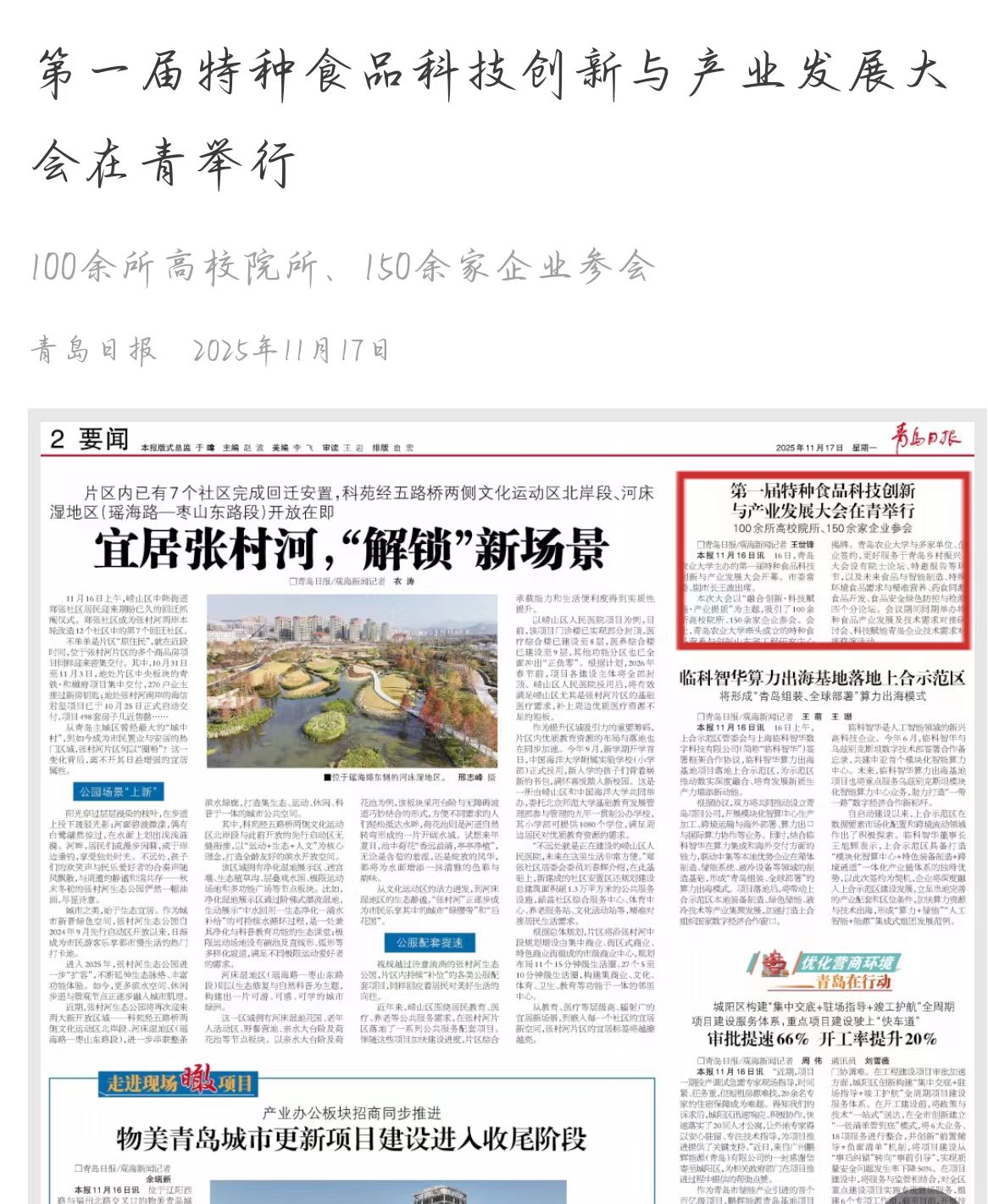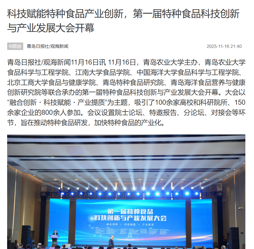 青岛日报“观海新闻”:第一届特种食品科技创新与产业发展大会在青举行