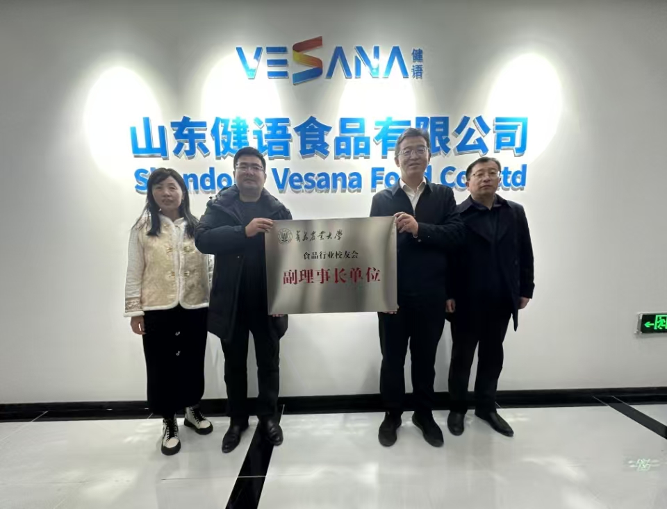 在潍坊,车广杰一行走进潍坊新食代预制食品科创谷,与校友企业山东健语食品有限公司负责人进行座谈交流,并向校友企业授牌。负责人黄永庆详细介绍了公司围绕在潍坊新食代预制食品科创谷的产业集群优势、生产经营、规模效益等情况。车广杰介绍了学院建设发展情况,希望校友继续发挥好桥梁纽带作用,促进企业与母校开展更多领域、更深层次、全方位的交流合作。