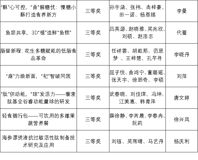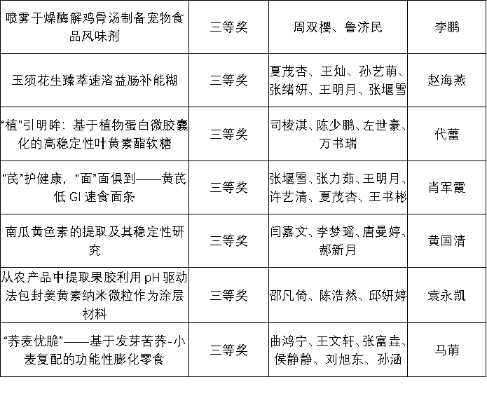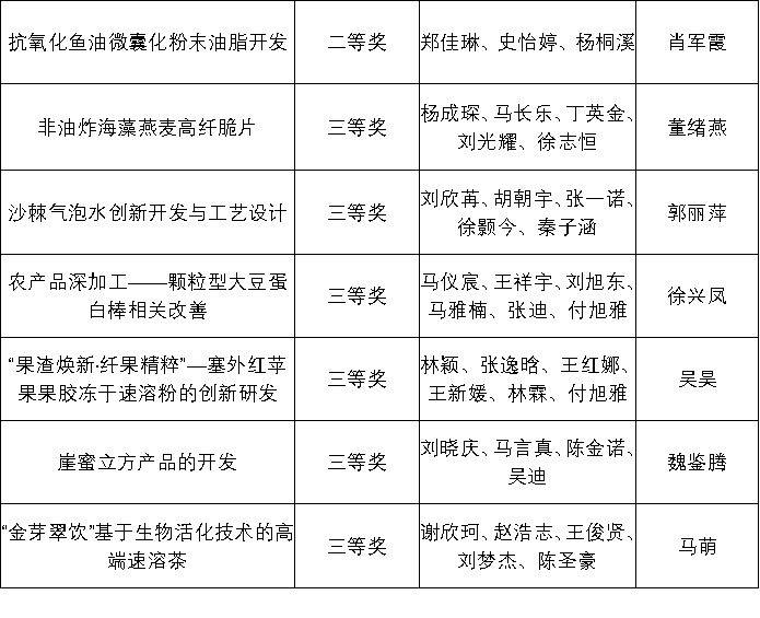 为鼓励我校大学生勇于创新、善于创新,加强大学生的实践能力与合作精神,提升大学生的综合素质,2025年9月至12月初,williamhill体育中文举办第六届农产品加工创新创业竞赛。本次大赛共235名学生参加,经作品初审、终审阶段,评审专家从科学性、创新创意性和可行性等方面对各参赛队作品进行了综合评定,大赛最终评选出一等奖6项、二等奖13项、三等奖20项。