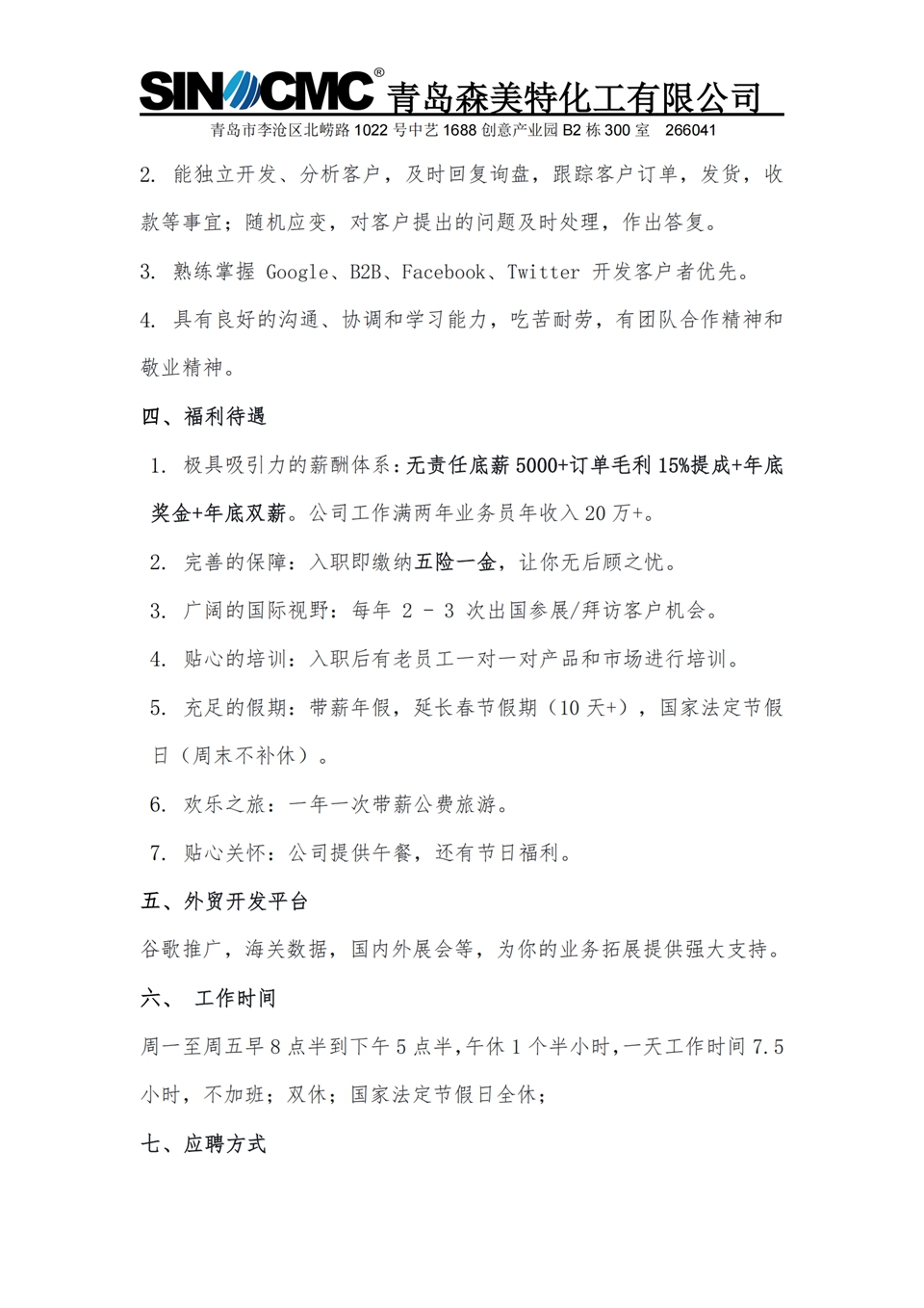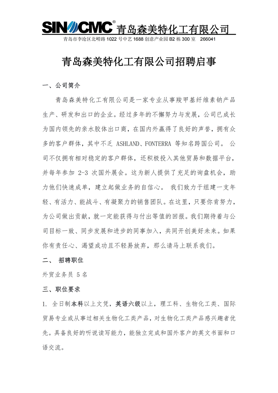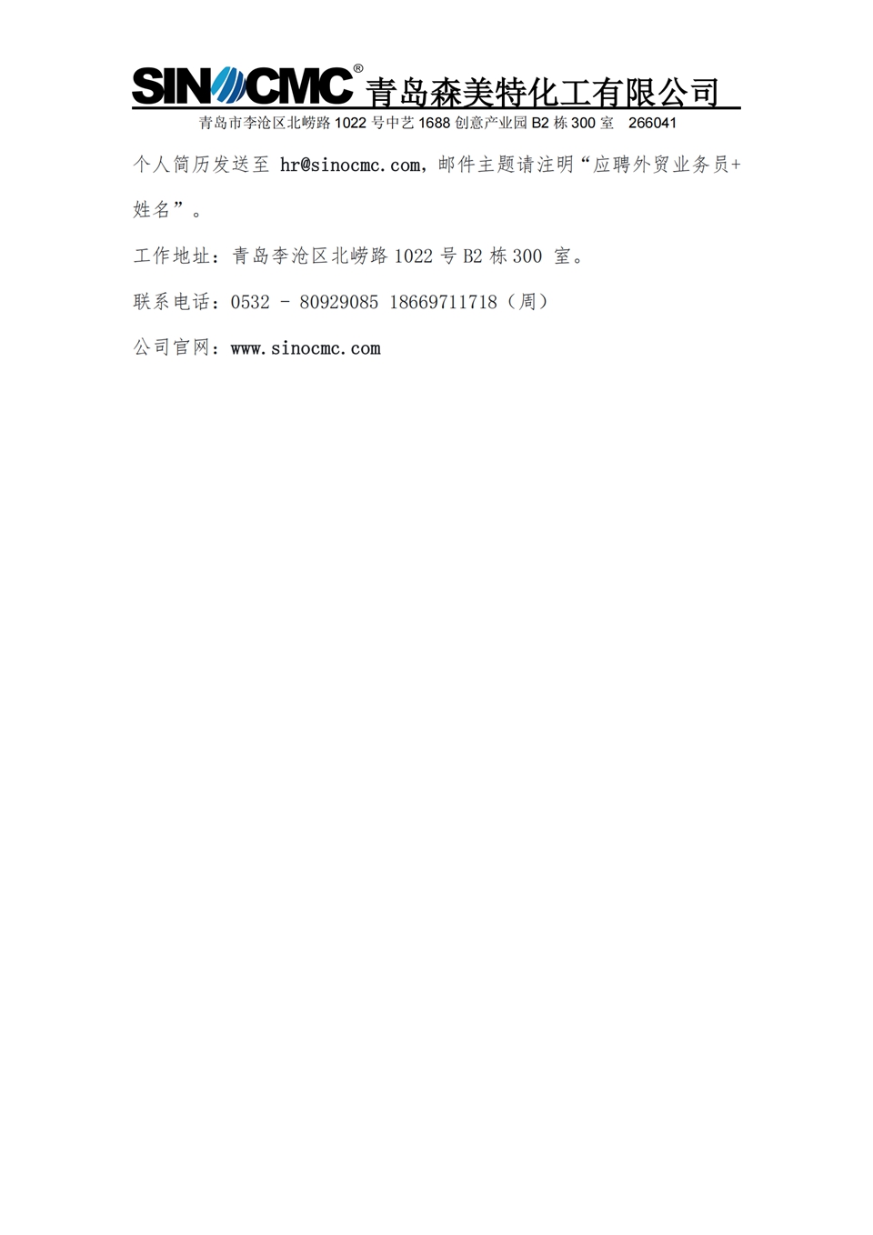 就业 1号 青岛森美特化工有限公司
