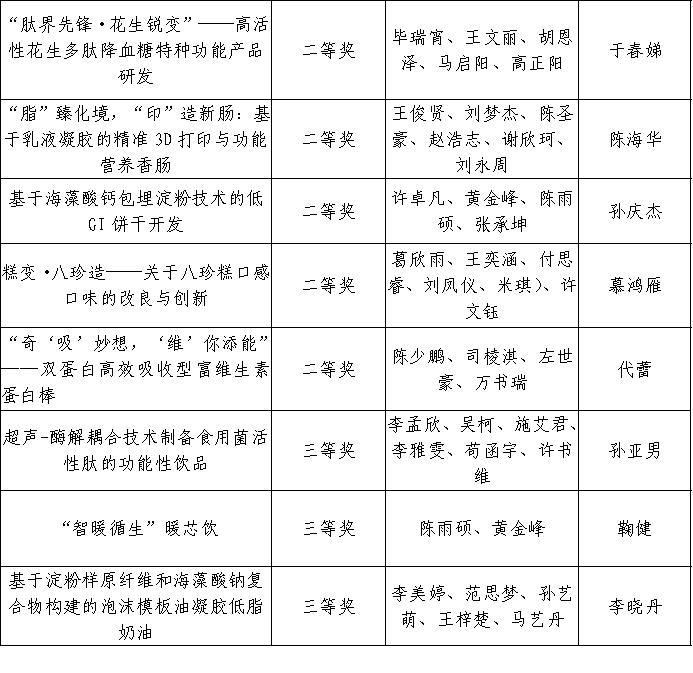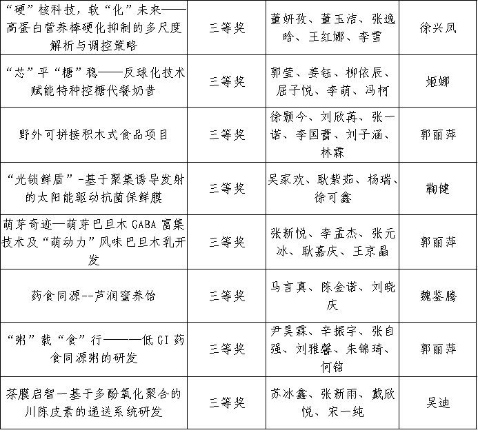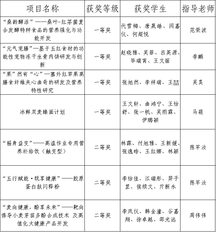 为鼓励我校大学生勇于创新、善于创新,激发创造潜能和学习热情,加强大学生的实践能力与合作精神,提升大学生的综合素质,2025年9月23日至12月初,williamhill体育中文举办第四届特种食品开发创新创业大赛。本次大赛共213名学生参加,经作品初审、终审阶段,评审专家从科学性、创新创意性和可行性等方面对各参赛队作品进行了综合评定,大赛最终评选出一等奖4项、二等奖8项、三等奖11项。