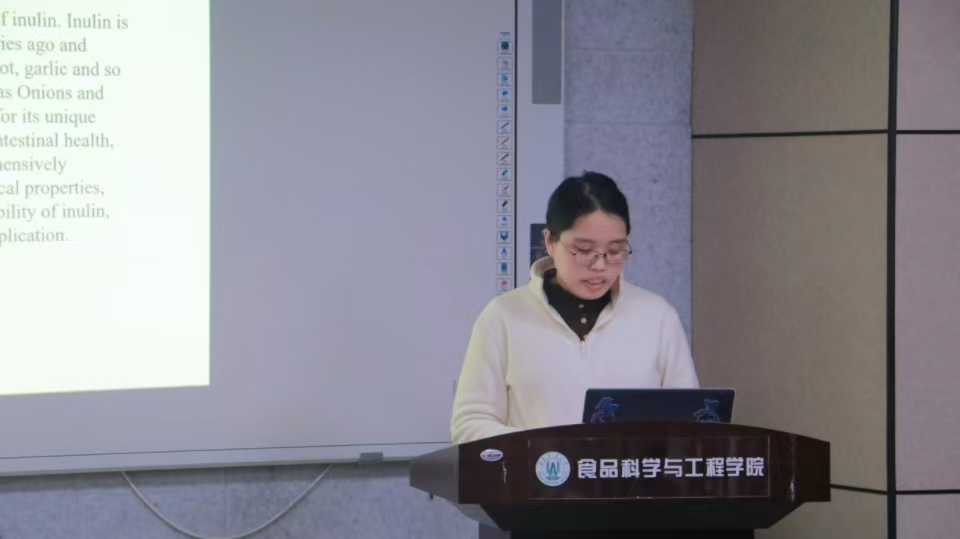 报告最后,王昕昭强调,菊粉的提取和纯化过程对其最终的物理化学特性有着显著的影响,而这些特性对于菊粉在食品工业中的应用是至关重要的。王昕昭的报告不仅令在场师生对菊粉在食品工业中的应用有了深入的了解,更为未来的研究提供了新的视角和灵感。