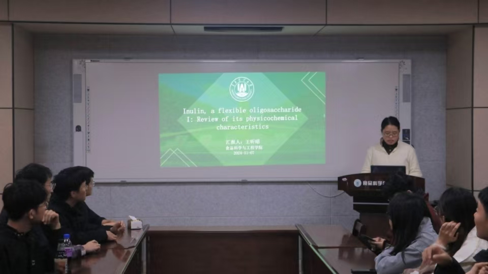 11月7日,食品学院举办了第三十期“食学研讲”活动。本次活动由食品加工与安全专业24级研究生王昕昭主讲,主题为“菊粉,一种柔性低聚糖I :理化性质综述”,探讨了菊粉的物理化学特性及其在食品工业中的应用前景,为大家带来了精彩纷呈的学术分享。