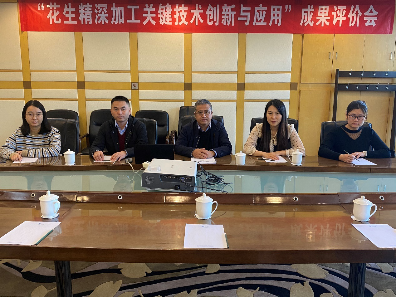 专家组听取了项目的研究工作、技术总结等报告,审阅了相关材料,经质询和讨论,形成科技成果评价报告。报告认为,该成果创新了变温压差膨化、充氮油炸、真空远红外烘烤结合充氮包装等食品新技术,开发了低过氧化值、保质期长的花生休闲食品,解决了易氧化酸败、保质期短等难题,创制了变更式挤压膨化和螺纹回流低温压榨制备高NSI花生蛋白的关键技术与部件,并在此基础上突破了低水分挤压花生组织蛋白及调味植物蛋白素肉规模化生产、花生蛋白基可食用保鲜膜制备,以及复合双向酶解制备花生抗氧化肽关键技术,实现了花生饼粕的高值化利用。集成应用负压空化、大孔树脂纯化、微胶囊等新技术,开发了花生红衣原花青素高附加值产品,解决了其稳定性差、吸收利用率低的弊端,提高了花生副产物的附加值和市场竞争力。