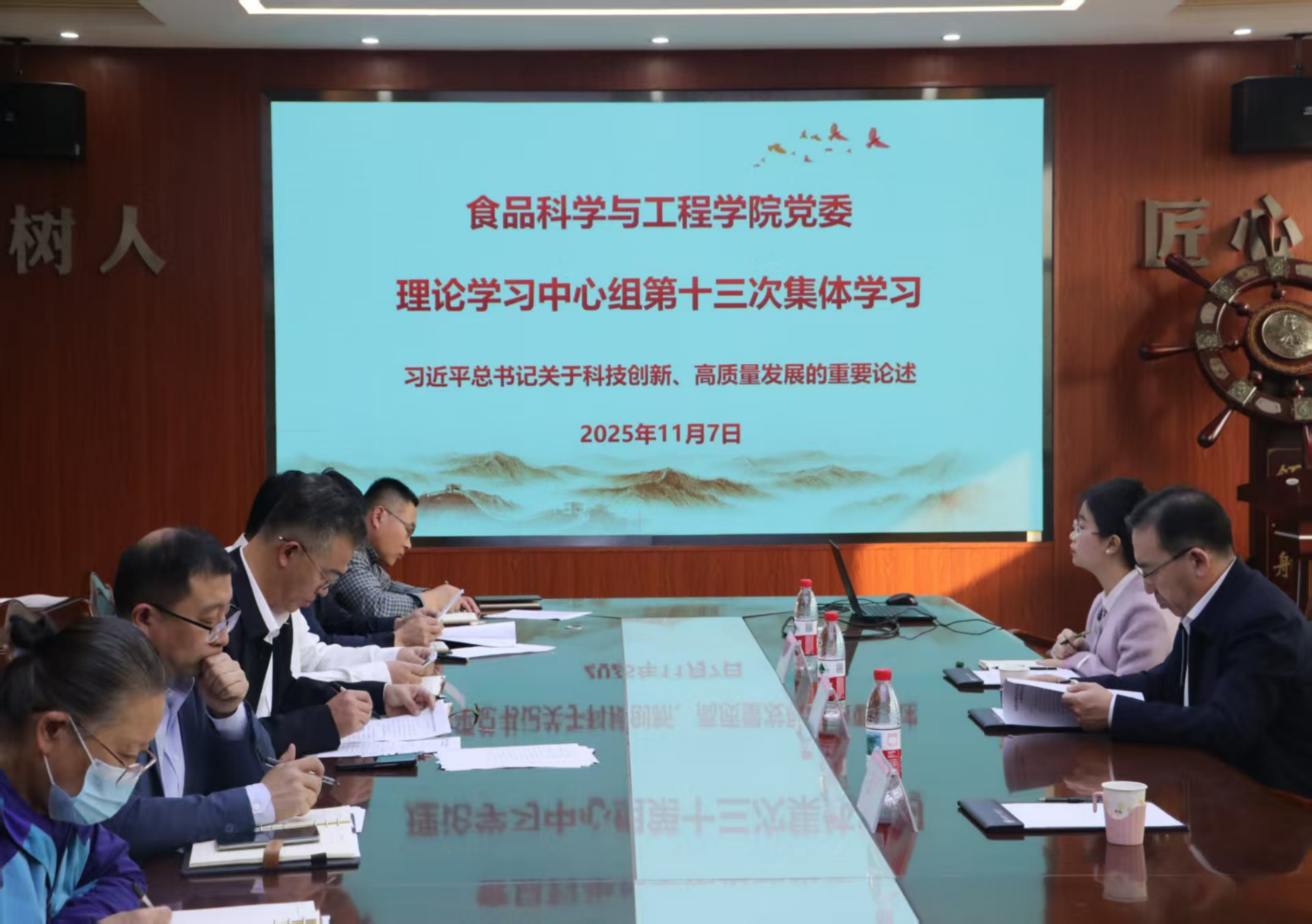 会上,车广杰汇报食品学院2025年中心组学习情况。会议集中学习了《习近平:发展新质生产力是推动高质量发展的内在要求和重要着力点》《习近平:加快建设科技强国 实现高水平科技自立自强》和习近平总书记关于科技创新、高质量发展的相关重要论述。集体学习期间,与会人员集中观看了学习视频《新质生产力的内涵》。