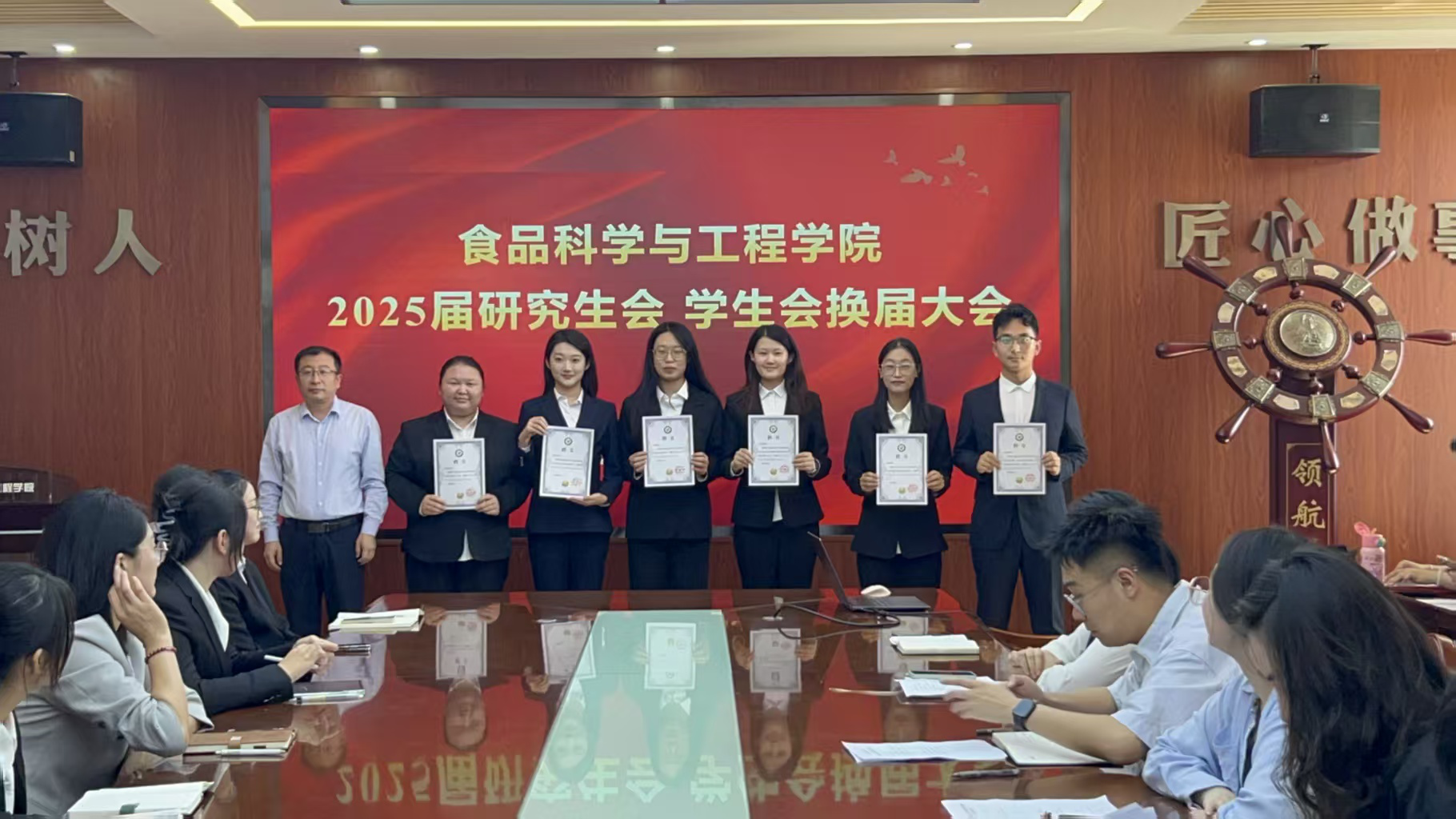 会上,2024届研究生会主席团成员冷丰羽与第三十二届学生会主席团成员李文哲分别作述职报告,系统总结了过去一年所取得的工作成果,客观剖析了存在的不足,并寄语新一届学生会同学立足服务同学、助力学院事业发展,以责任和行动擦亮“食品人”的品牌形象。2025届研究生会主席团成员张兴宇与第三十三届学生会主席团成员张一帆代表新一届主席团发言,承诺将坚守服务初心,围绕服务优化、活动创新与机制完善等方面推进工作,加强团队协作,为学院发展注入新活力。