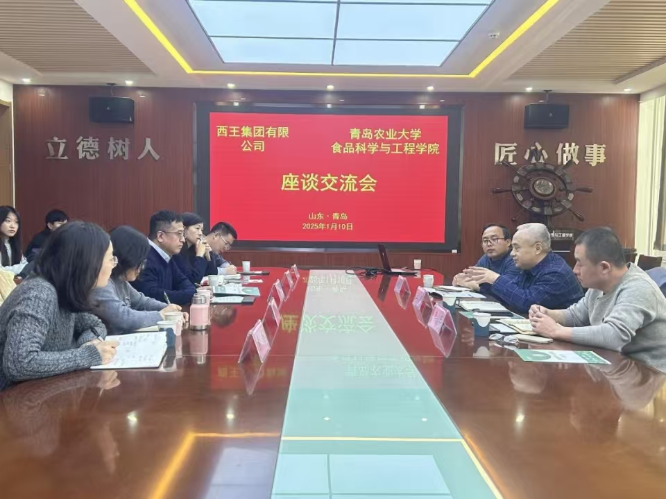 座谈会上,孙庆杰代表学校对王岩一行来访表示欢迎,并详细介绍了学校以及食品学院发展情况。他希望双方进一步密切沟通,结合公司发展目标与食品学院专业建设特点,全面深入对接,实现资源优势互补,深化产教融合,开展资源联动、共建共育,促进人才培养与产业协同发展,实现校企共赢。王岩介绍了西王集团有限公司的发展历程、核心产品、未来发展方向以及结合产学研合作等方面提出企业发展需求。