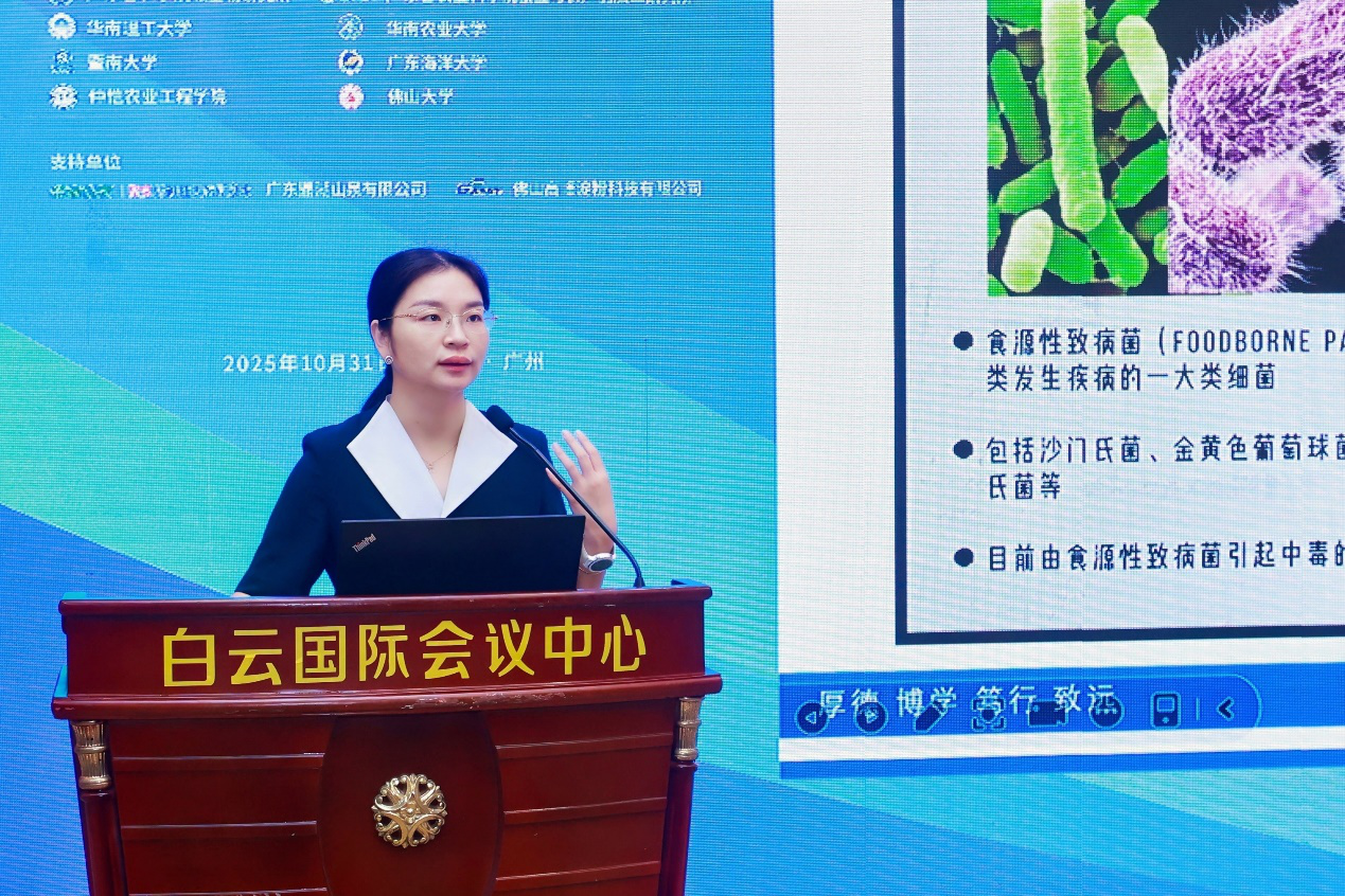 2025年10月30-31日,由广东省科学院微生物研究所、广东省农业科学院蚕业与农产品加工研究所、华南理工大学、华南农业大学、暨南大学、广东海洋大学、仲恺农业工程学院、佛山大学等8家高校及科研院所共同承办的中国食品科学技术学会第二十二届年会在广州召开。我院青年教师吴薇教授在粤港澳大湾区食品科技创新论坛专题中担任主持嘉宾并做学术报告。