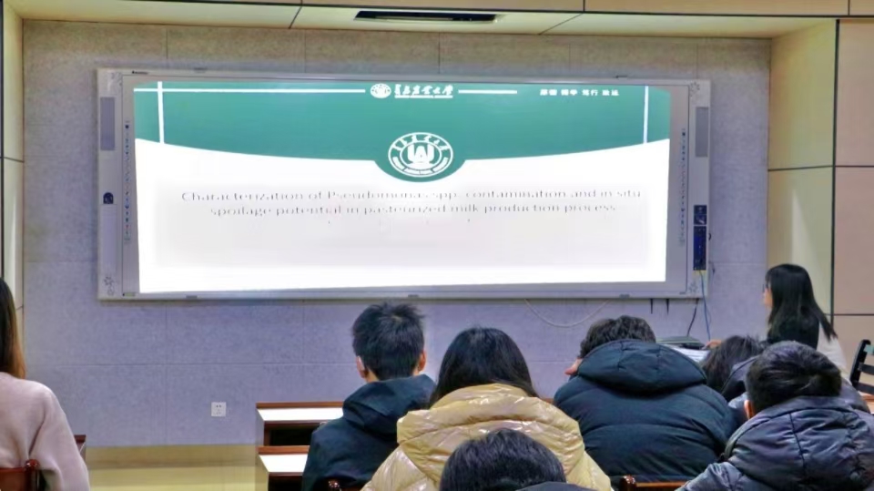 韩浩冉同学的报告不仅揭示了假单胞菌在牛奶生产中的关键角色及其对乳品质的具体影响,还为乳制品行业的品质控制和防腐策略提供了科学依据。该研究成功锁定了牛奶生产中的关键污染环节,为巴氏杀菌奶的防腐保鲜提供了有力的数据支持,为学院在乳制品研发及品质保障领域的研究开辟了新的方向。