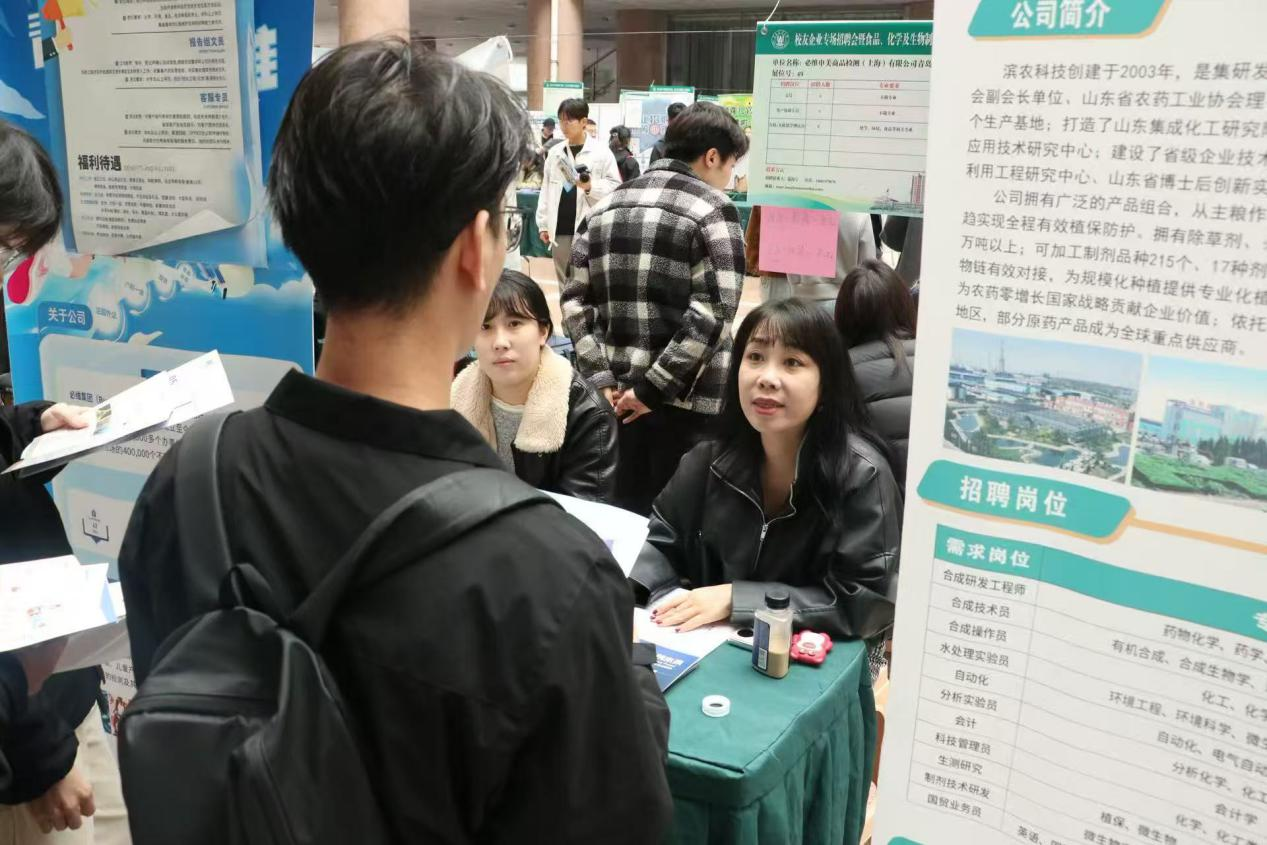 经过前期的多方沟通与宣传,本次招聘会共吸引67家企业参会,其中包括伊利、益海嘉里、龙大、桃李等龙头企业,同时汇聚青岛喜龙果食品、青岛蔚蓝生物集团等本土优质企业,为毕业生提供优质对口岗位1200余个。