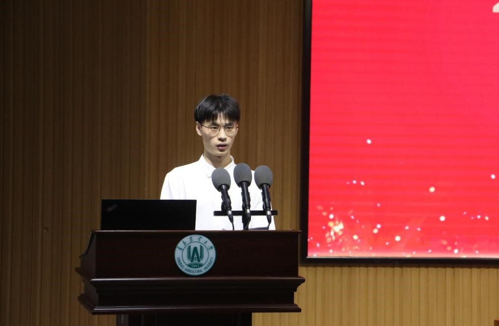 2025级新生代表张轩绮在发言中表达了初入研究生阶段的激动与憧憬。他表示,作为新时代的青年学子,将肩负起食品人的责任与担当,把个人理想融入国家发展大局,努力在科研实践中锤炼本领、增长才干,争做堪当民族复兴重任的时代新人。