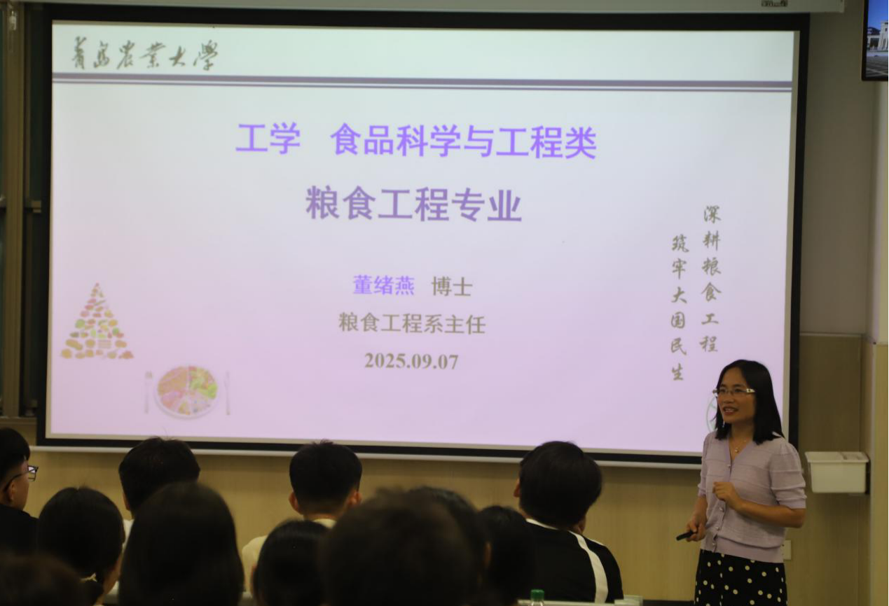 食品学院副院长肖军霞系统介绍了学院发展历程与建设成就,重点围绕学科建设、师资队伍与科研成果等方面展开,增强了新生对学院的认同感与归属感。